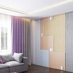 Панели светло-серого цвета, при необходимости могут быть окрашены в любой цвет по шкале RAL. На лицевую часть панели SAB Acoustic Premium модификации Velvet нанесено декоративное покрытие, которое визуально и на ощупь выглядит как вельвет или бархат.