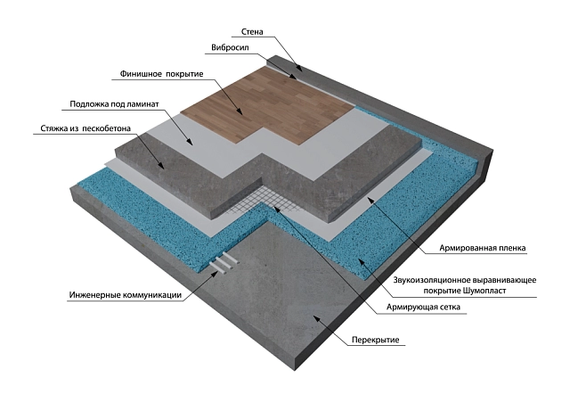 Звукоизол Гидро применяется при устройстве «плавающих» полов для защиты от ударного шума.