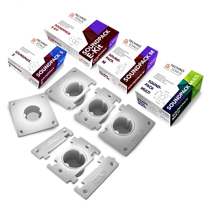 Серия наборных подрозетников СаундПак (SoundPack) разработана, чтобы исключить проникновение звуковых волн через гнезда розеток и электрических выключателей.